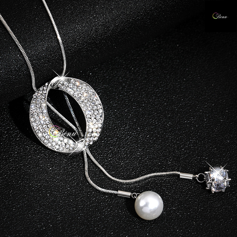Oval Pearl Zircon Long Necklace